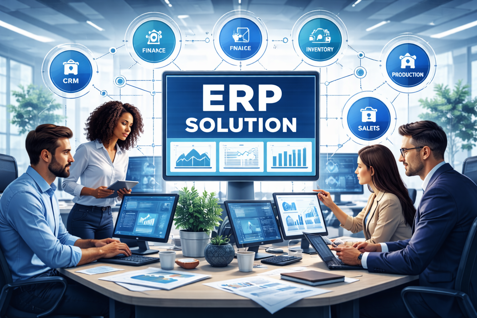 An ERP system is software that helps businesses in India automate and improve core processes such as finance, manufacturing, procurement, and sales. Modern ERP solutions are cloud-based and use advanced technologies like AI, machine learning, chatbots, process automation, and RPA to drive digital transformation and productivity.